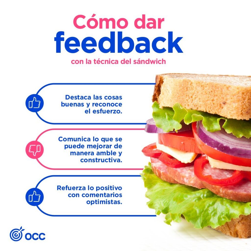 La regla del sándwich consiste en dar retroalimentación en tres pasos: